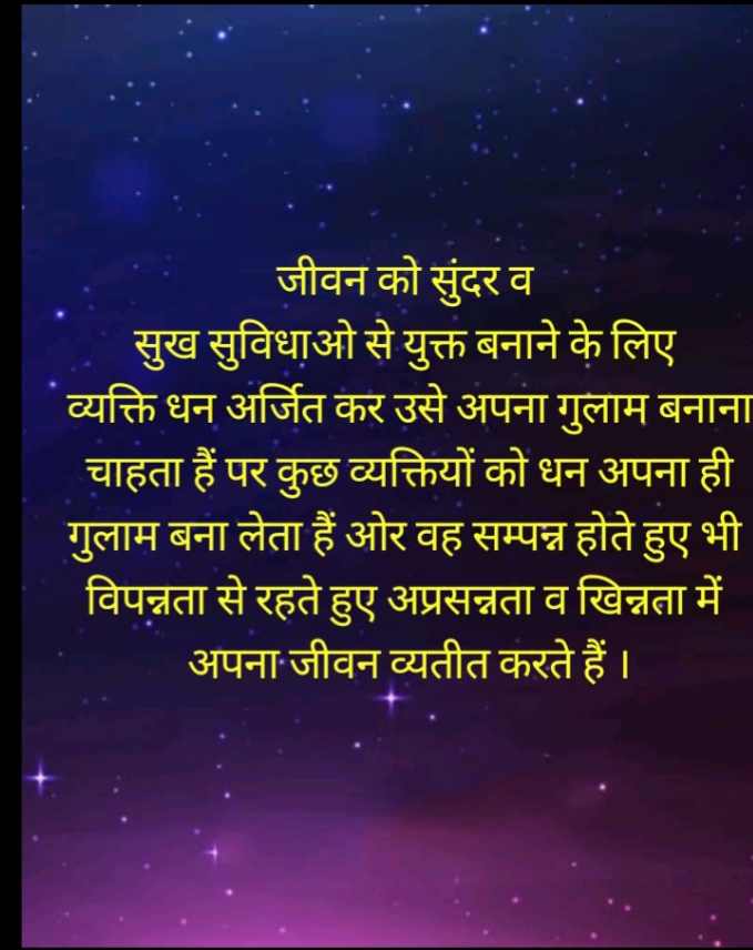जीवन को सुंदर व सुख सुविधाओ से युक्त बनाने के लिए व्यक्ति धन अर्जित कर उसे अपना गुलाम बनाना चाहता हैं,